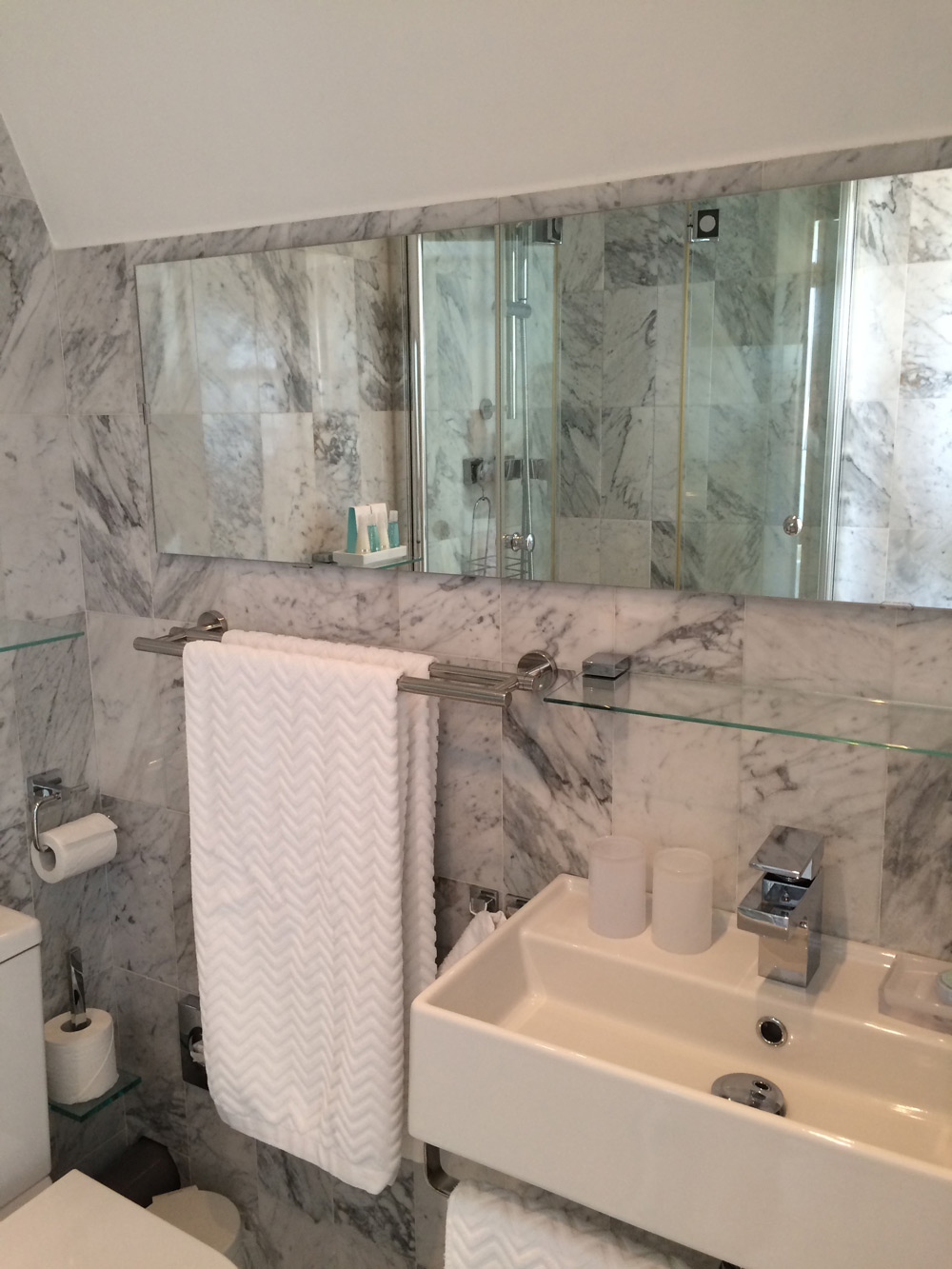 with bath ca 18 Qm, the bed is two times 80 x 200cm, flat screen TV, sitting area, marble bath with shower.